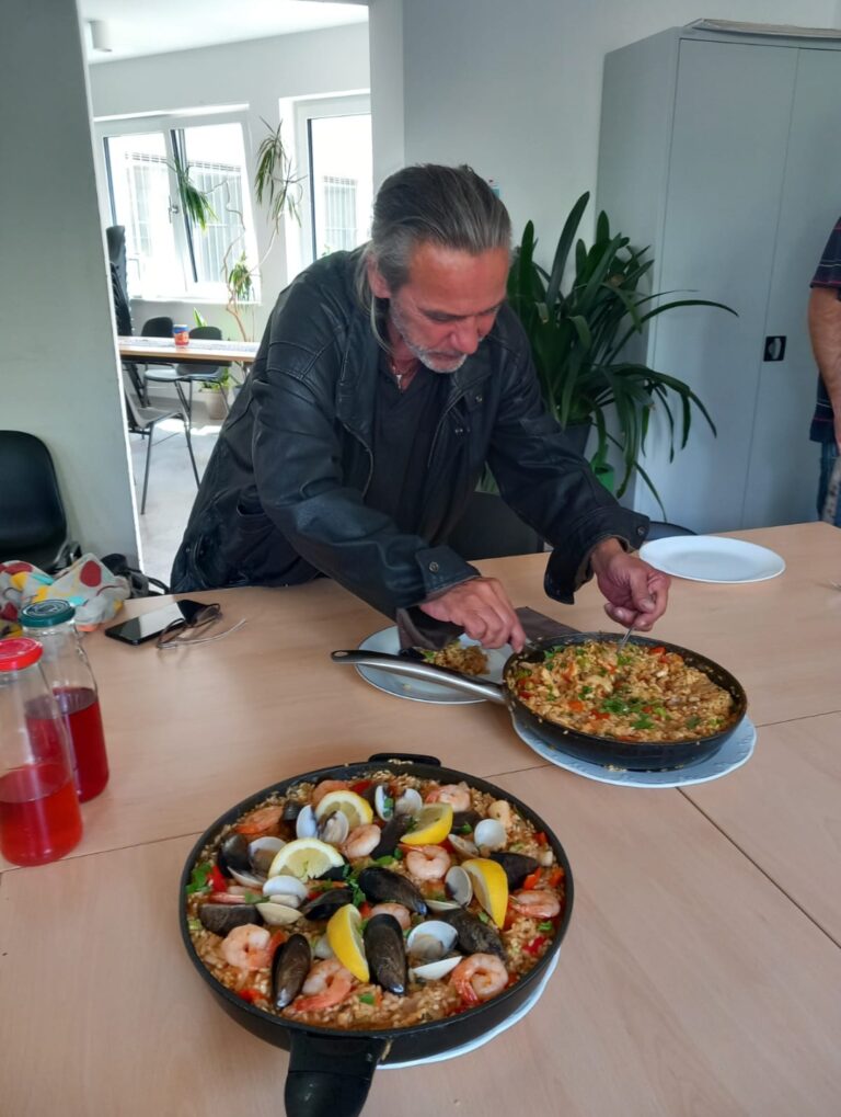 „Kochen ist mehr als nur Nahrungszubereitung. Es schafft Nähe, Austausch und Vertrauen“, beschreibt Philippe Adelhardt, Sozialarbeiter des Projekts SABiNe, den Charakter des Angebots. Der Kochtreff schafft einen niedrigschwelligen Rahmen, um miteinander ins Gespräch zu kommen, Beziehungen zu stärken und soziale Teilhabe zu ermöglichen.